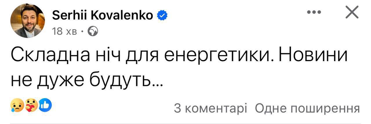 In all the cities affected by the attack, the necessary services are already working. Rescuers, power engineers, regional and local authorities, police and utility companies are helping people. No one will be left without help. Electricity supply is being restored. Kharkiv and its region, Zaporizhzhia, Sumy, Poltava, Dnipro, Odesa, Khmelnytsky, Vinnytsia and Frankivsk regions - wherever it is needed, restoration work has been going on since last night.