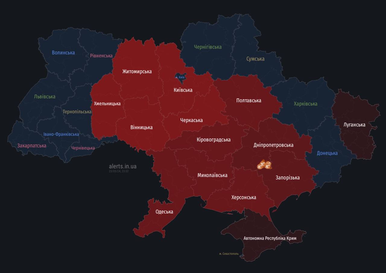 Ударні БпЛА фіксуються у напрямку Полтавської області, а також у Херсонській та Миколаївській.