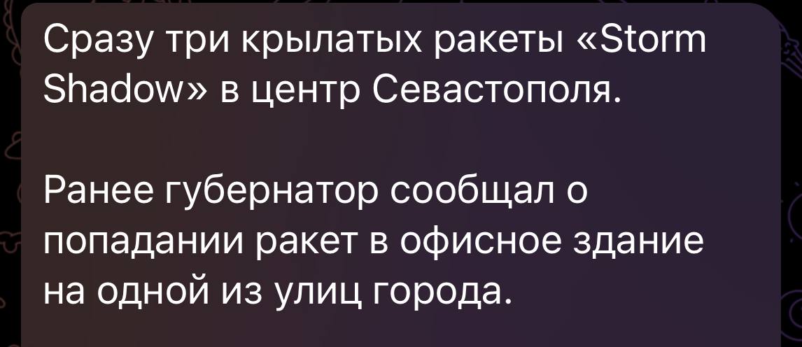 Pe-Ve-O is working in Sevastopol. The Katsaps counted at least 10 Storm Shadow - of course, they shot everything down beforehand.