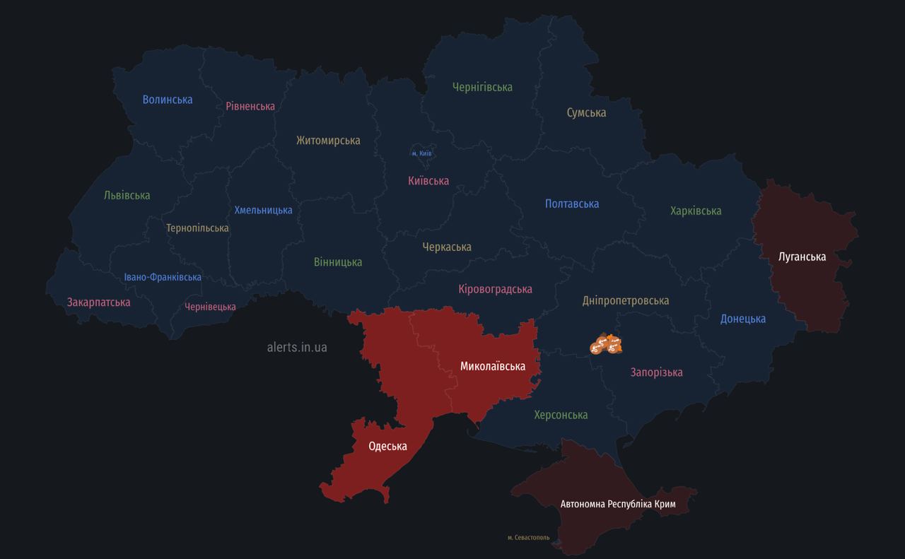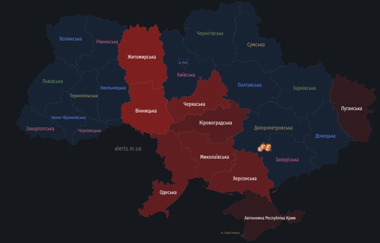 Повітряна тривога на Одещині та Миколаївщині