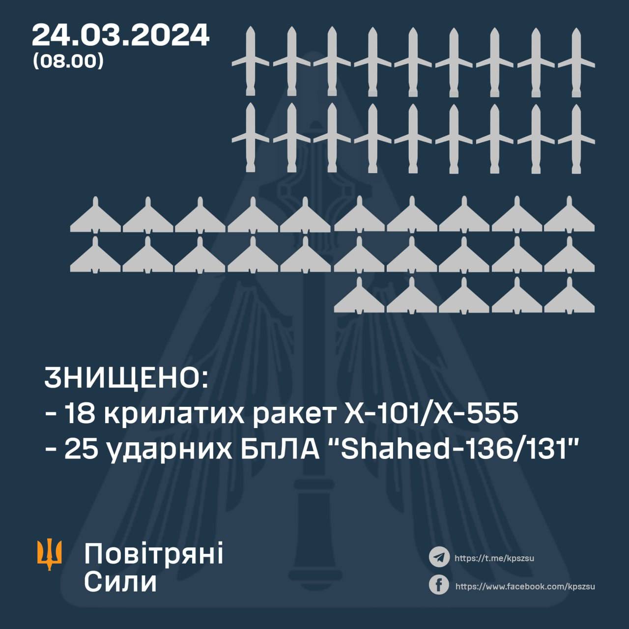 ▪️Вночі 43 air targets destroyed over Ukraine