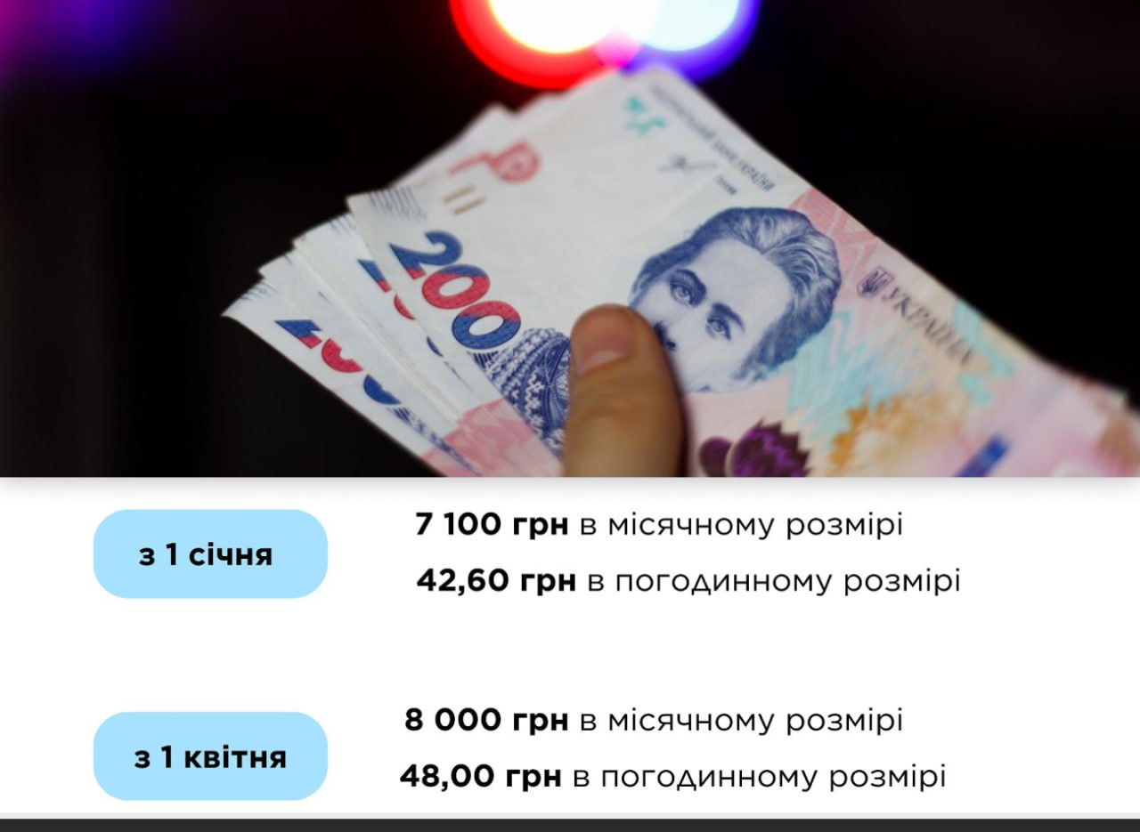 ⚡️С April 1 minimum wage increases - from 7100 UAH to 8000 UAH, - Shmygal