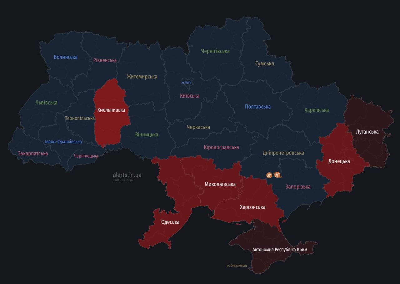A new group of shahedis in the south of Mykolaiv region. UAVs in Khmelnytskyi region in the direction of Starokostiantyniv. Chechens in Odesa region in the direction of Odesa. Ballistic missile threat is over - Ukrainian Air Force