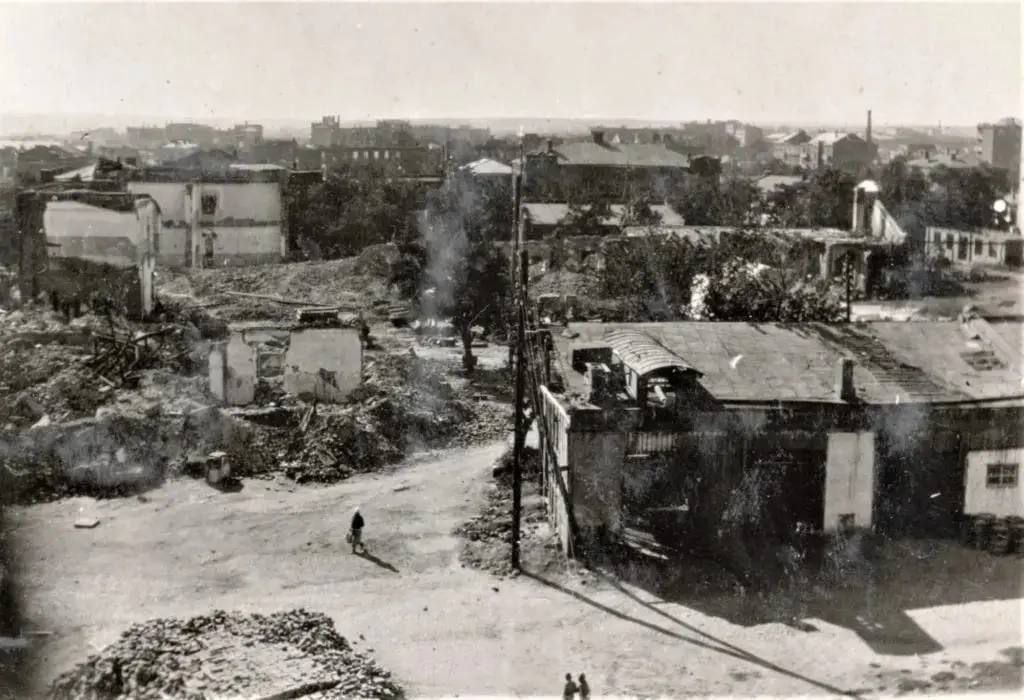 The satellite images show traces of a large fire in one of the parking lots.