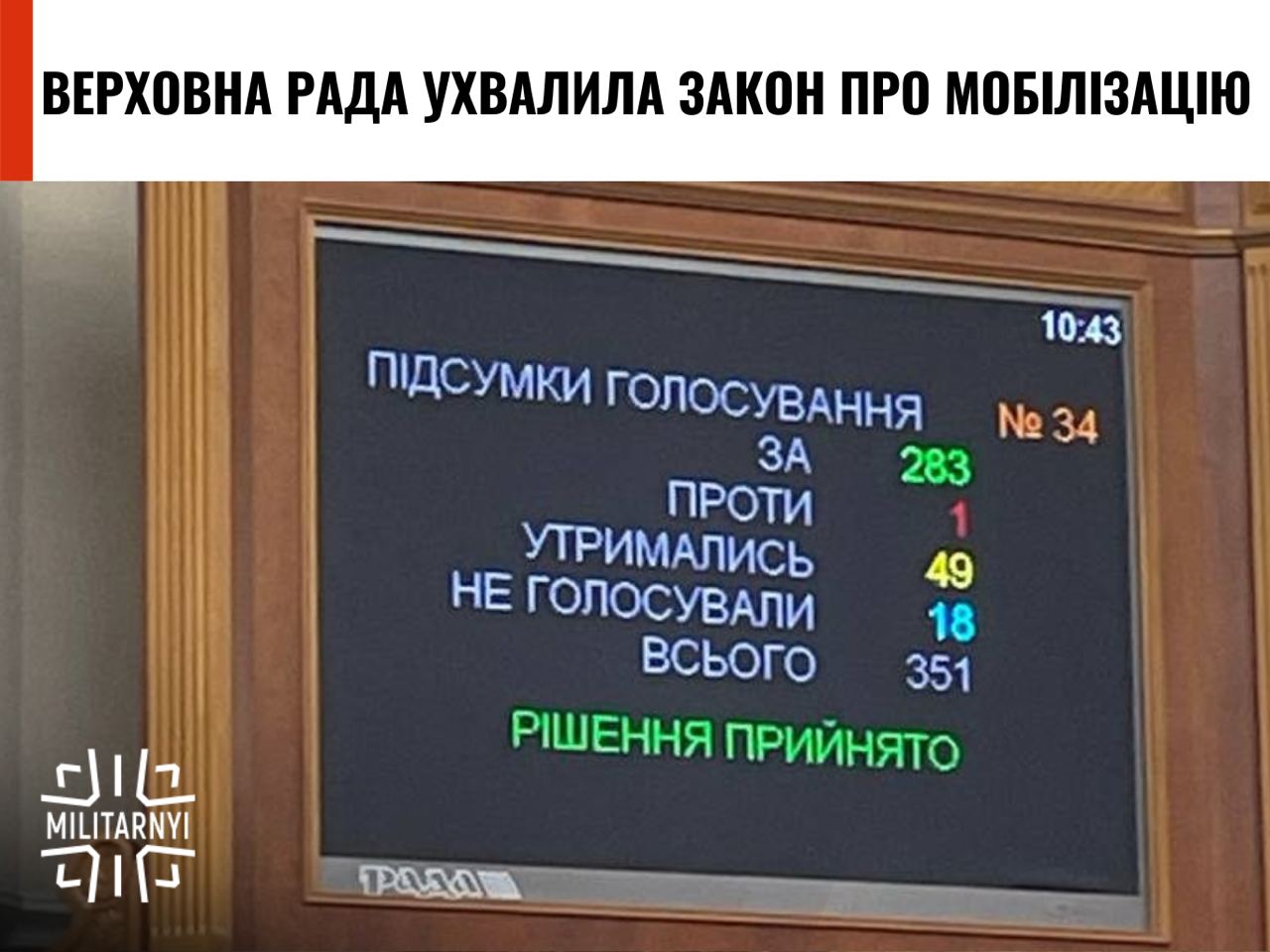 Законопроєкт про мобілізацію прийнятий🫡