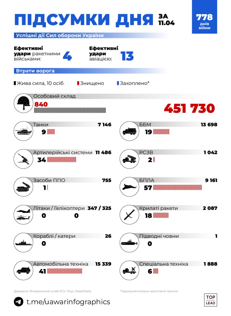 Втрати русні за 11.04.2024