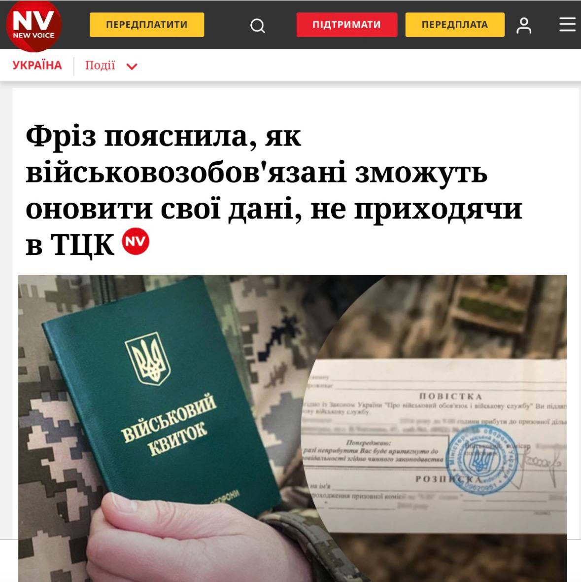 ⚡️Не посещая военкомат и не боясь получить повестку: военнообязанные смогут обновить свои данные также в ЦНАП или электронном кабинете, — нардеп Фриз