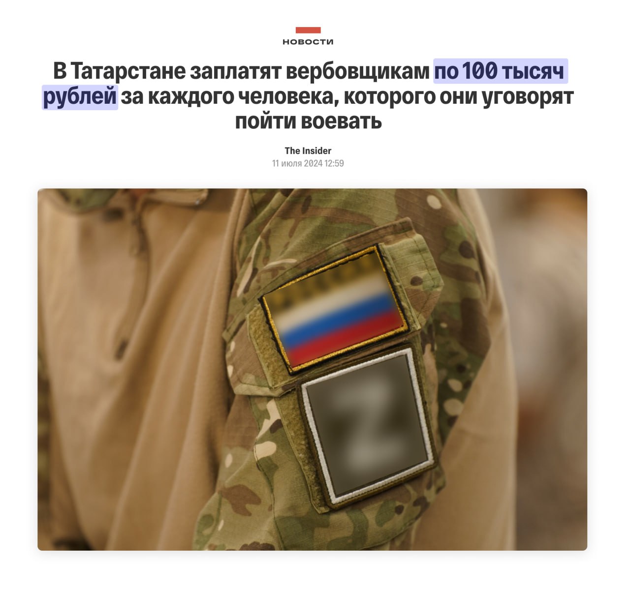 🔵 Татарстанцам предлагают «привести друга» на подписание контракта с Минобороны и получить по 100 тысяч рублей за каждого новобранца. Вербовку на войну по методу сетевого маркетинга официально оформляют по договору оказания услуг.