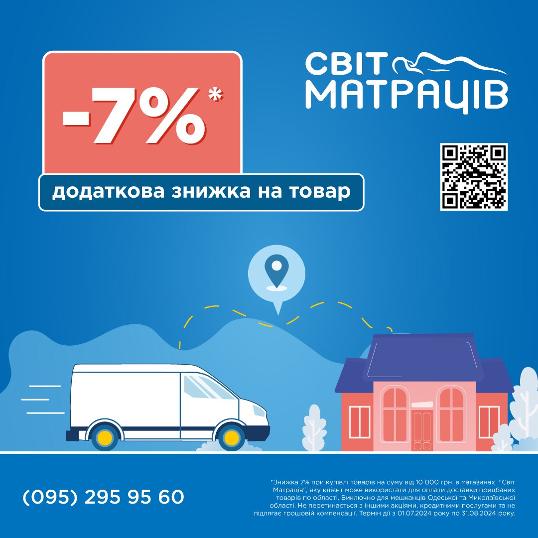 7% discount on purchases from 10,000 UAH in World of Mattresses stores💙