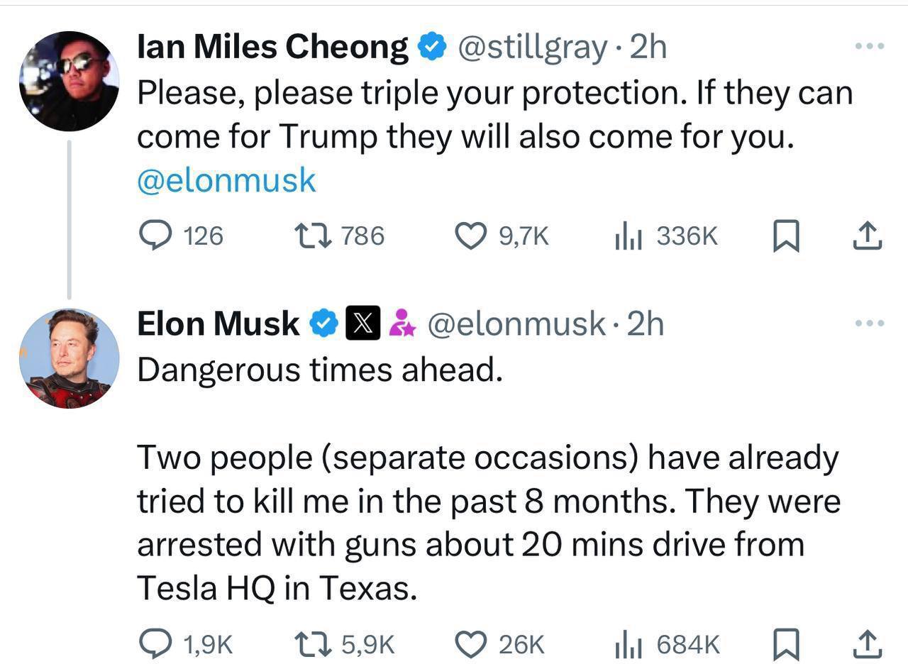 ▪️Трамп отреагировал на покушение: “Я сразу понял, что что-то не так, так как услышал свистящий звук, выстрелы и сразу почувствовал, как пуля рвет кожу. Невероятно, что такое может произойти в нашей стране“.