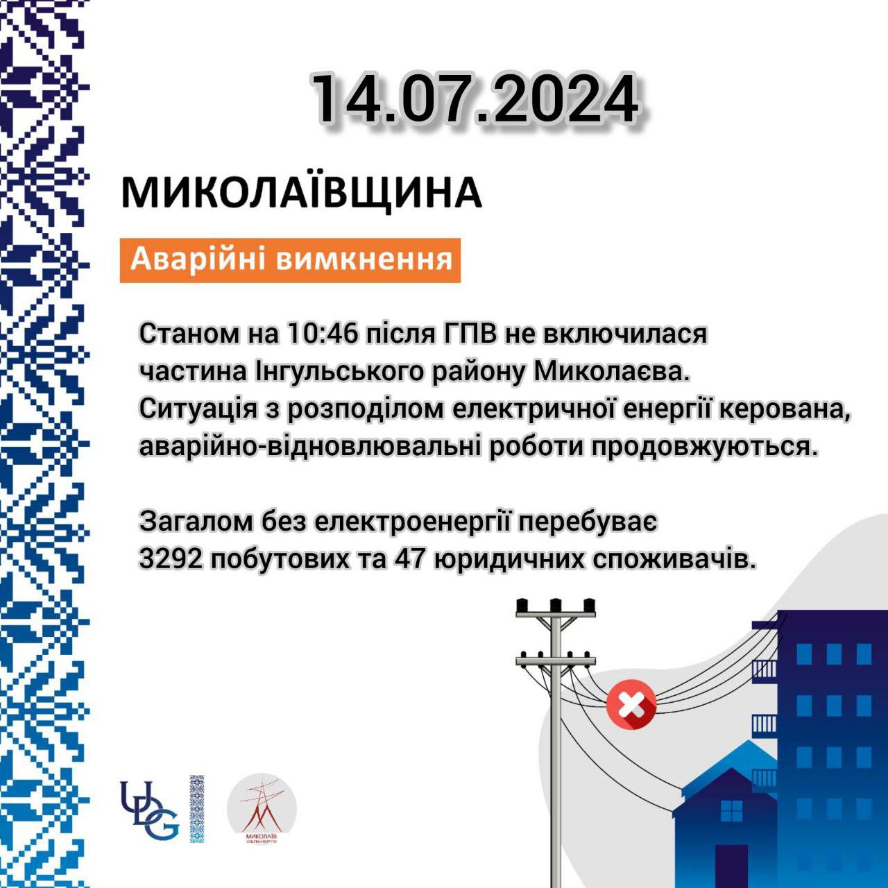 "As a result of damage to power lines, several settlements in the Rylskiy district were left without power supply.