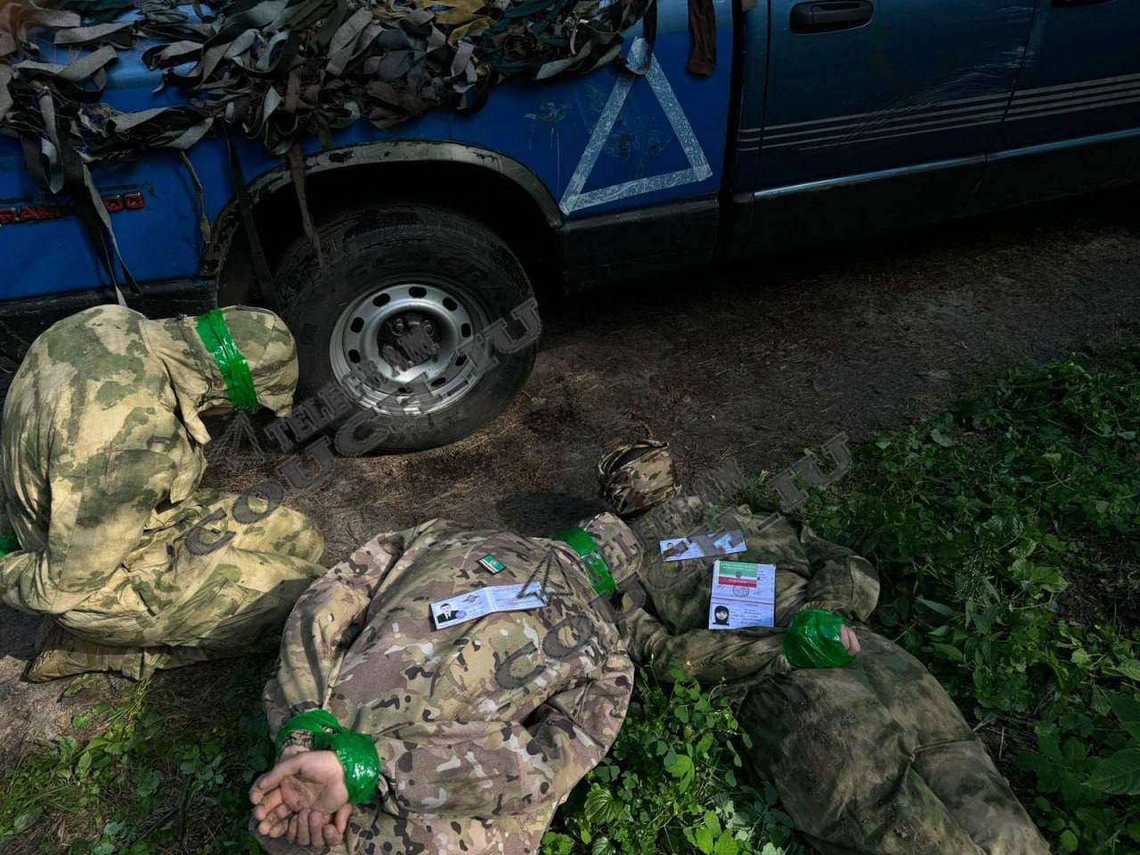 They were claimed to be captured Russian guardsmen hiding in Suzha. Two of the three are Kadyrovites.