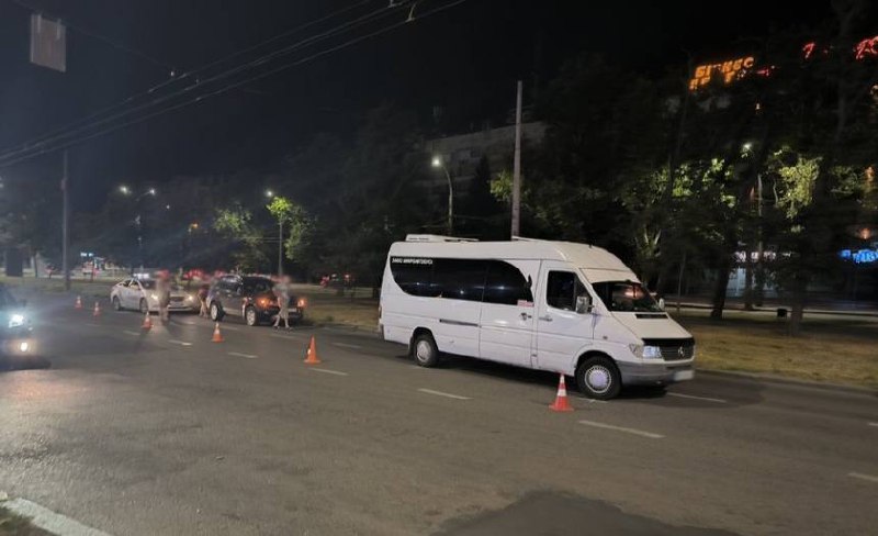 Навпроти зупинки біля «Сіті-центру» водій мікроавтобуса, що їхав у середньому ряду, почав зміщуватися вліво через транспорт, що від'їжджав від зупинки. В результаті сталося зіткнення з «Міцубісі», який їхав у крайньому лівому ряду.