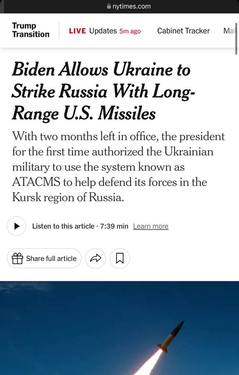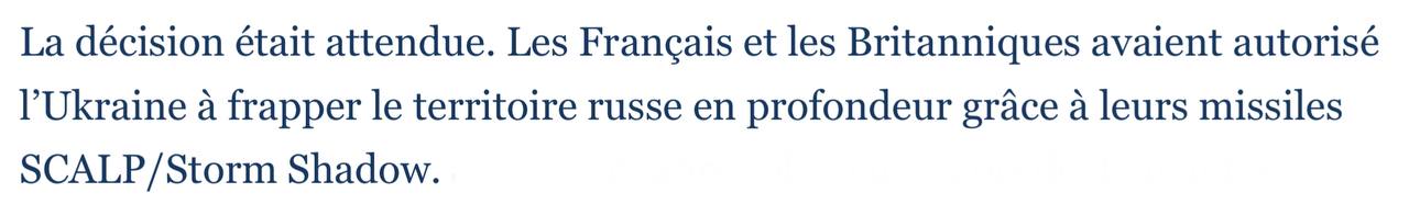 ⚡️Французьке Le Figaro reported on Sunday that France and Britain had authorized strikes deep into Russia, but later changed the text.