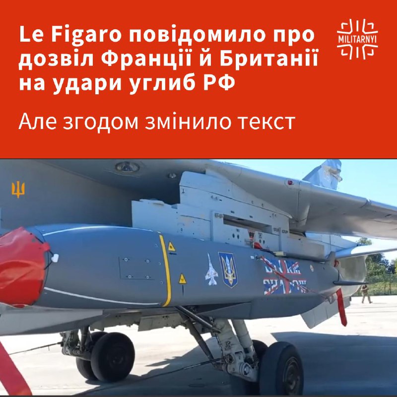 ⚡️Французьке видання Le Figaro у неділю повідомило про дозвіл Франції й Британії на удари углиб РФ, але згодом змінило текст.
