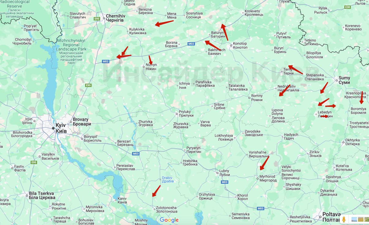 🔹 На півдні ЧЕРГНІГІВЩИНИ — курсом на КИЇВЩИНУ;