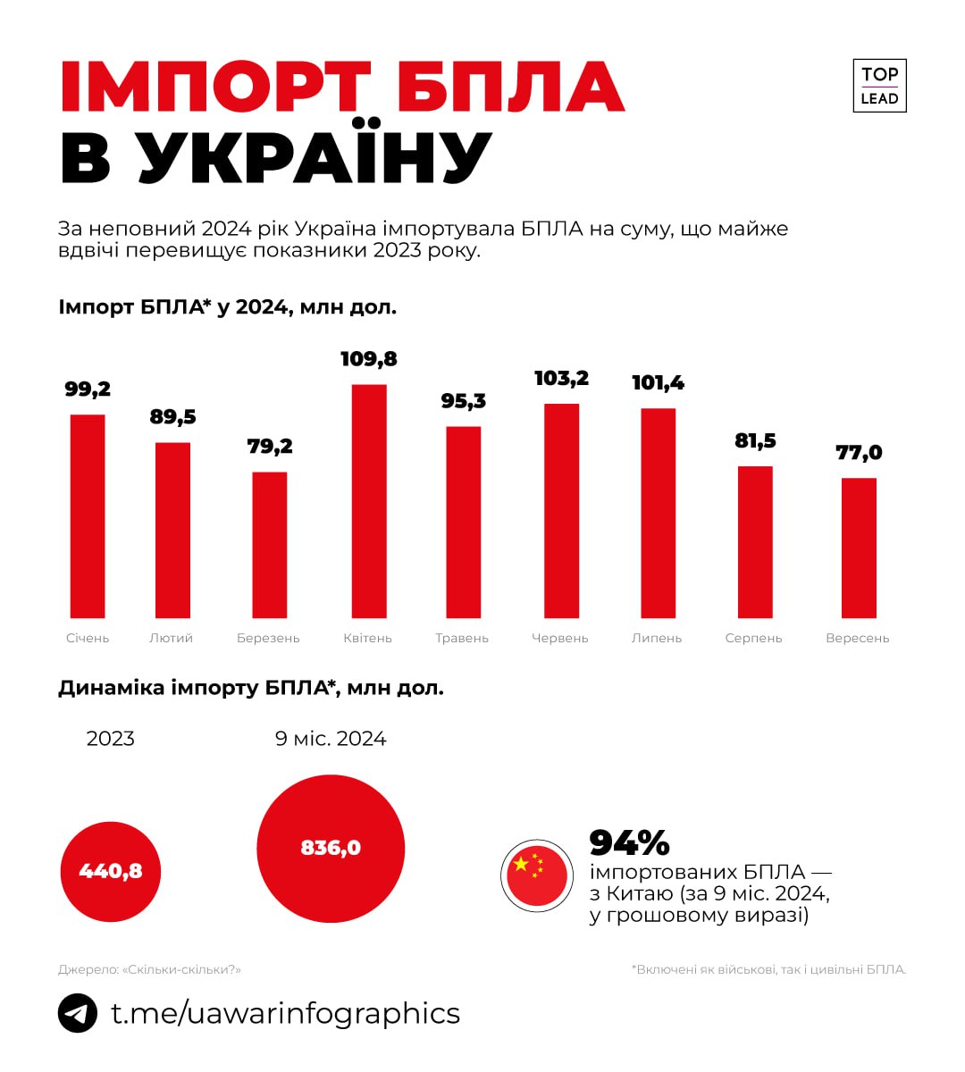 94% імпорту БПЛА — з Китаю.
