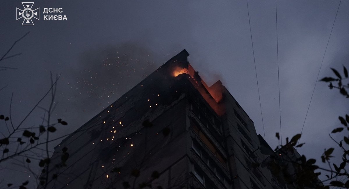 In the Pechersk district, a fire broke out on the 33rd floor of a residential building as a result of an enemy UAV attack, partially destroying the building structures of the 34th (technical) floor.