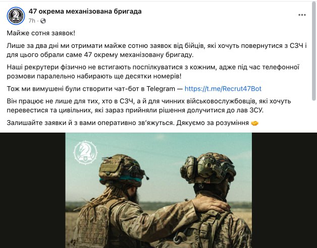 Вернулись из СЗЧ: Только за два дня 47-я ОМБ получила почти сотню заявок от бойцов, которые ранее самовольно оставили воинские части