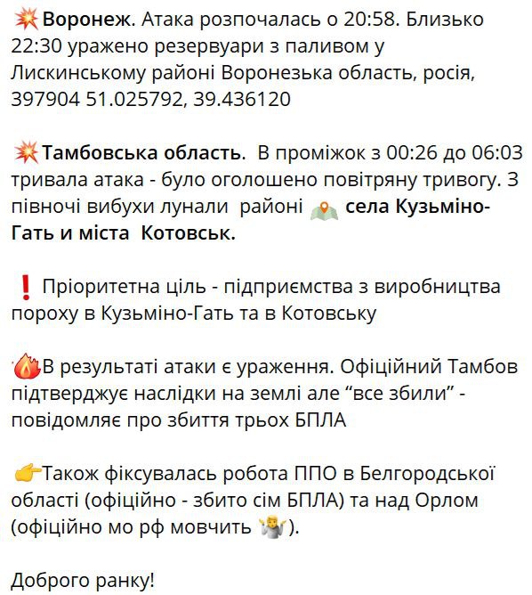 Thus, the explosions in Voronezh region resulted in at least three attack UAVs hitting the target.