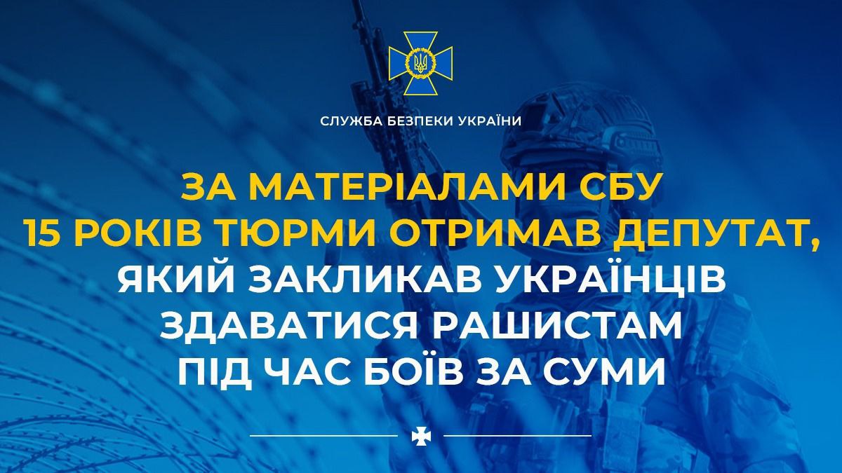 SBU materials give 15 years in prison to deputy who called on Ukrainians to surrender to racists during the battle for Sumy