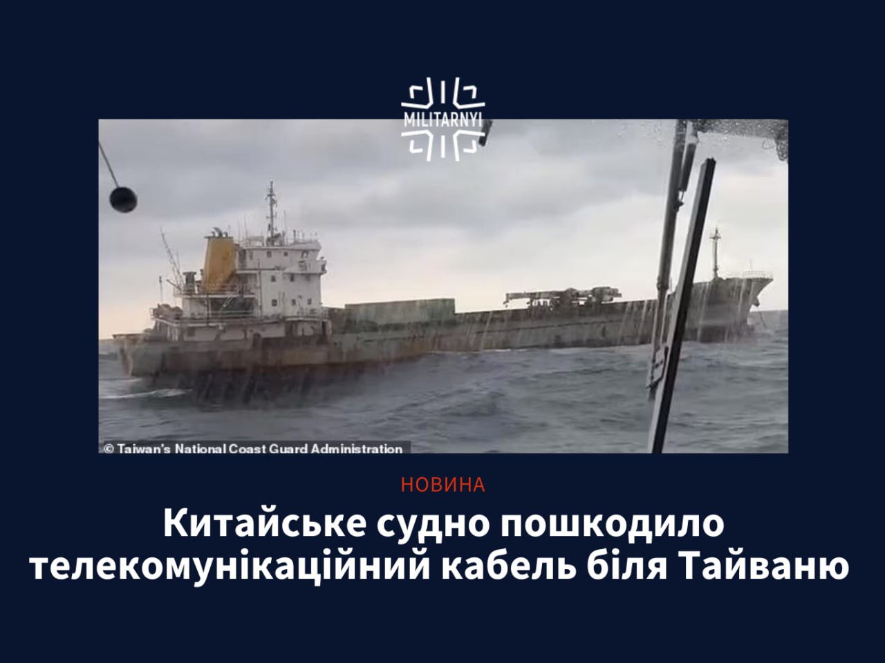 🇹🇼Китайське ship damaged a telecommunications cable off the coast of Taiwan.