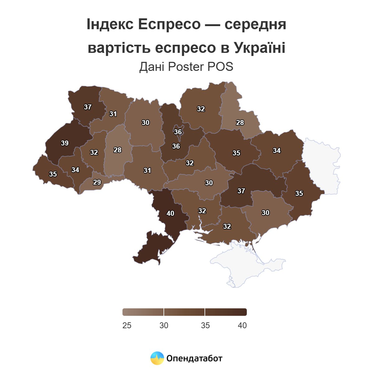 Станом на кінець грудня найдорожчу каву в Україні, як і у 2023 році, п’ють на Одещині: 40 грн за філіжанку. Далі йде Львівщина (39 грн) та Волинь (37 грн).