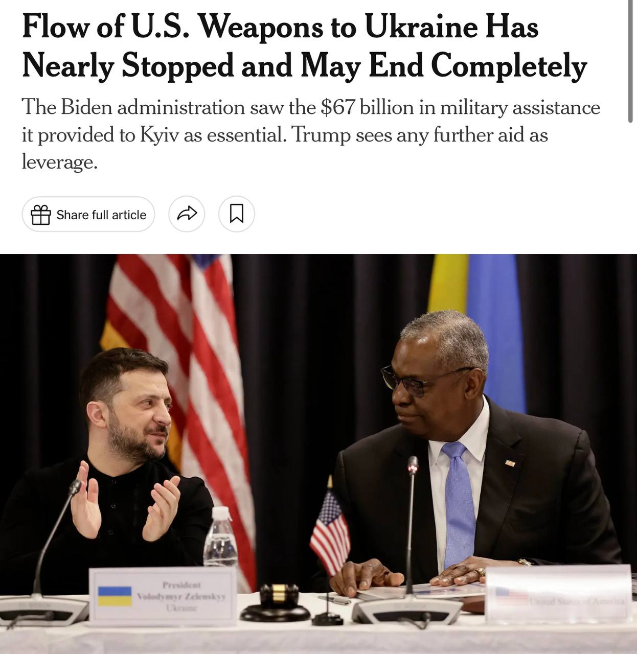 ❗️Адміністрація Trump may cut off further indirect support for Ukraine, including other types of military funding, intelligence sharing and military training - The New York Times