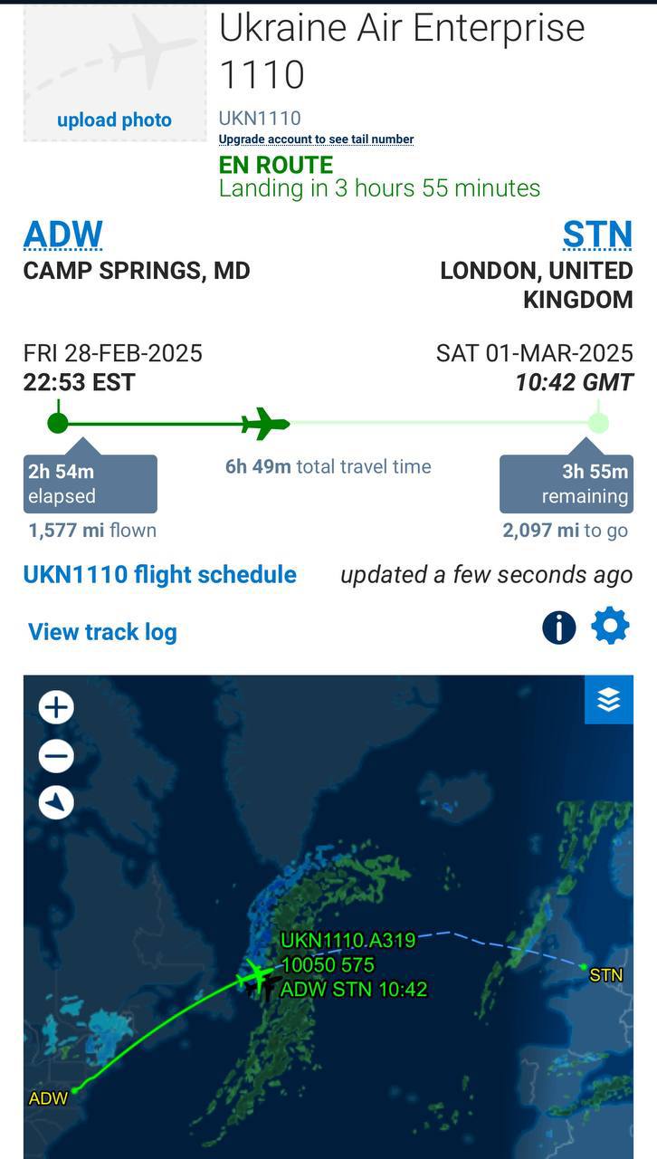 Zelensky's plane has left the U.S. and is now flying to London.