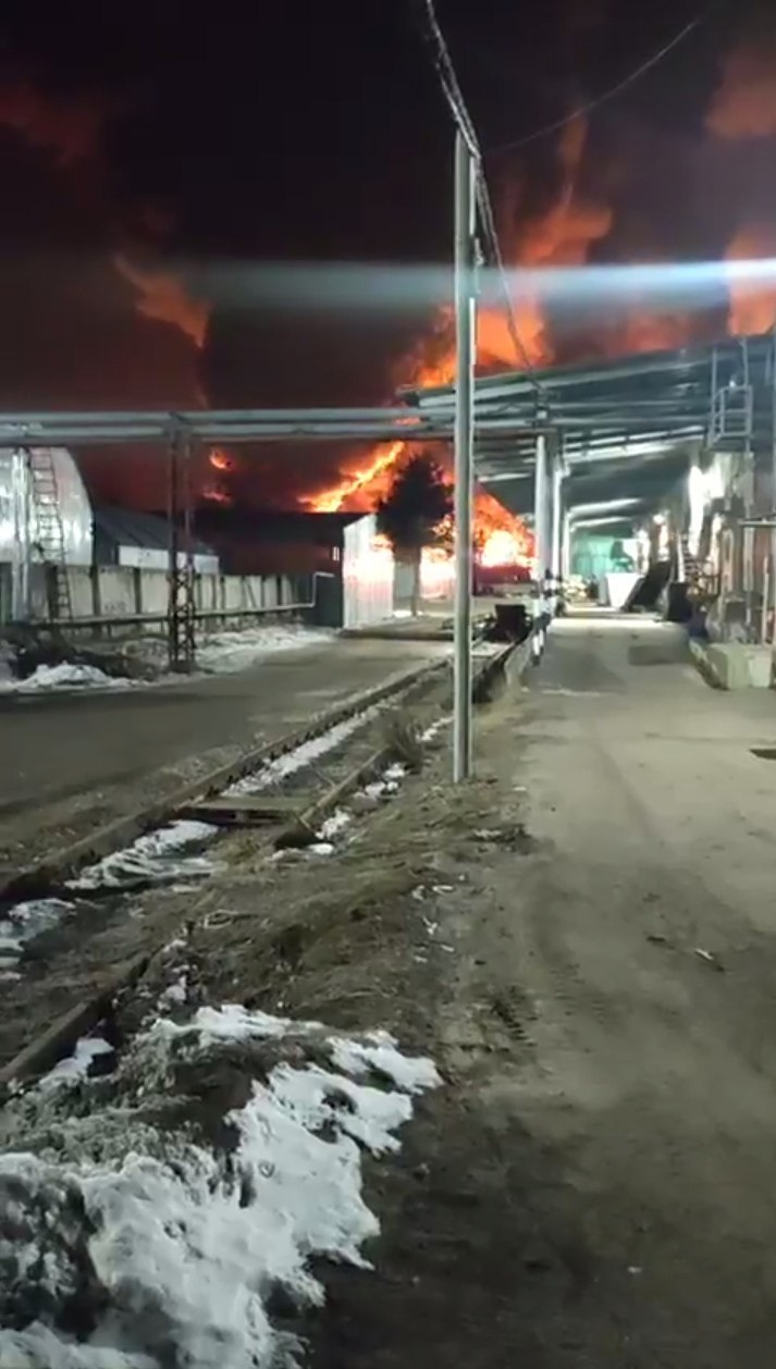 As a result of the attack, a one-story private house, trucks and cars on the territory of the enterprise caught fire.