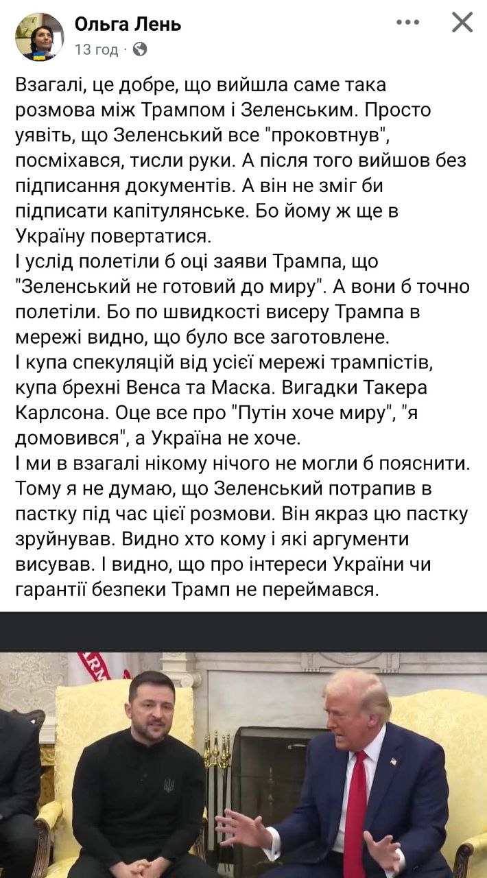 Trump claims that Zelenskyy is "not ready for peace." But by this he means Ukraine's surrender. This is a typical manipulation - replacing the concept of "just peace" with the concept of "surrender."
