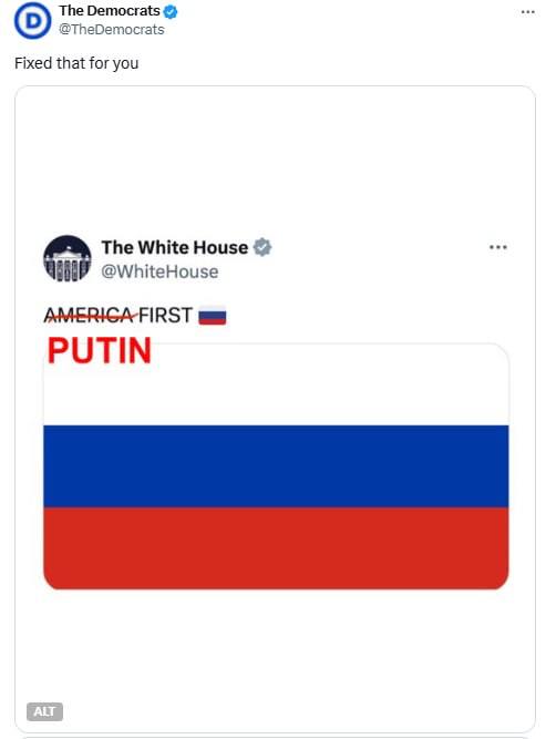 This is the case when in movies about themselves, the United States shows what "tough guys" they are, but in reality, their leaders bend over backwards for Putin and lick the balls of the dictator and terrorist number one.