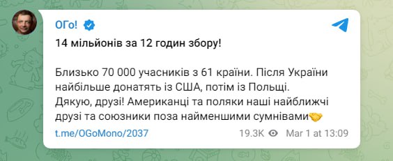 In 20 hours we have raised 27.2 million hryvnias!