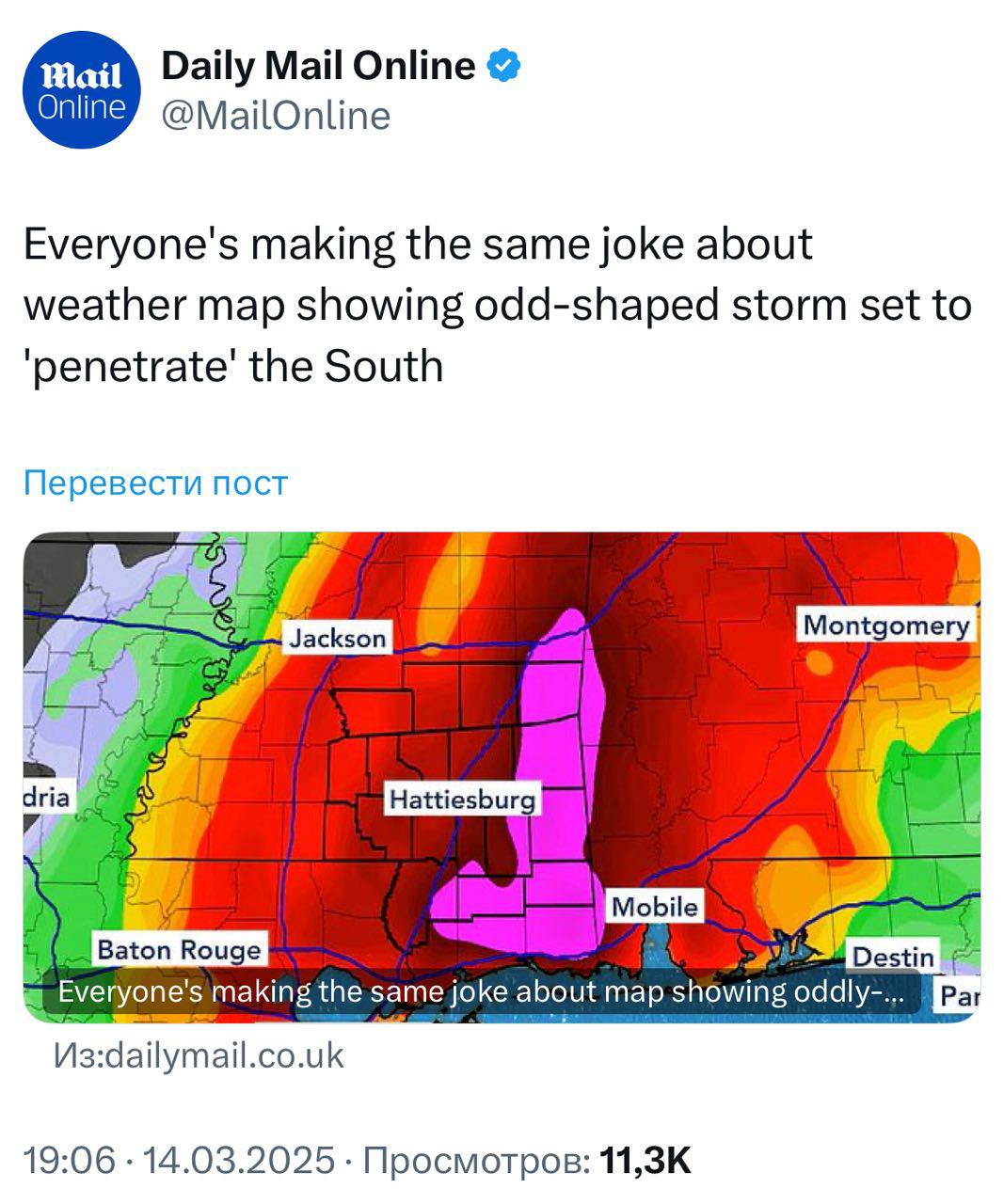 A giant penis will penetrate the southern United States tomorrow - before they burst out laughing In fact, a strong storm of this shape is moving towards the United States