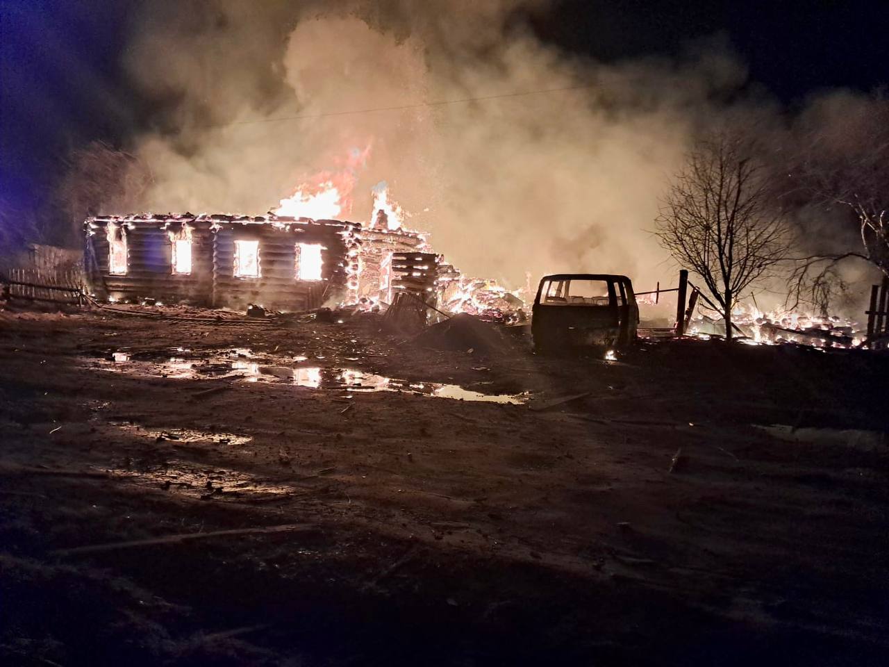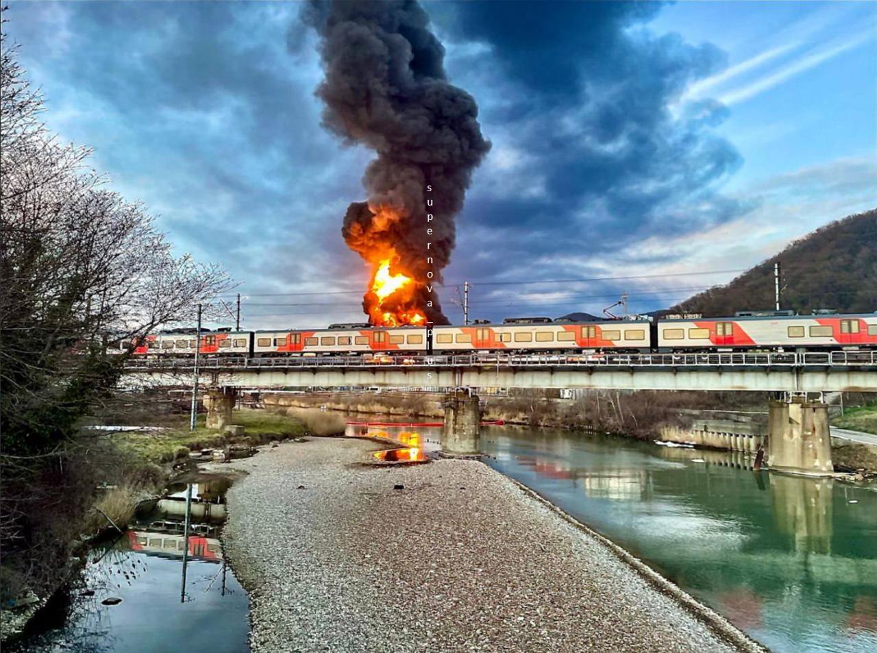 A fire started on the spot, rescuers are working.