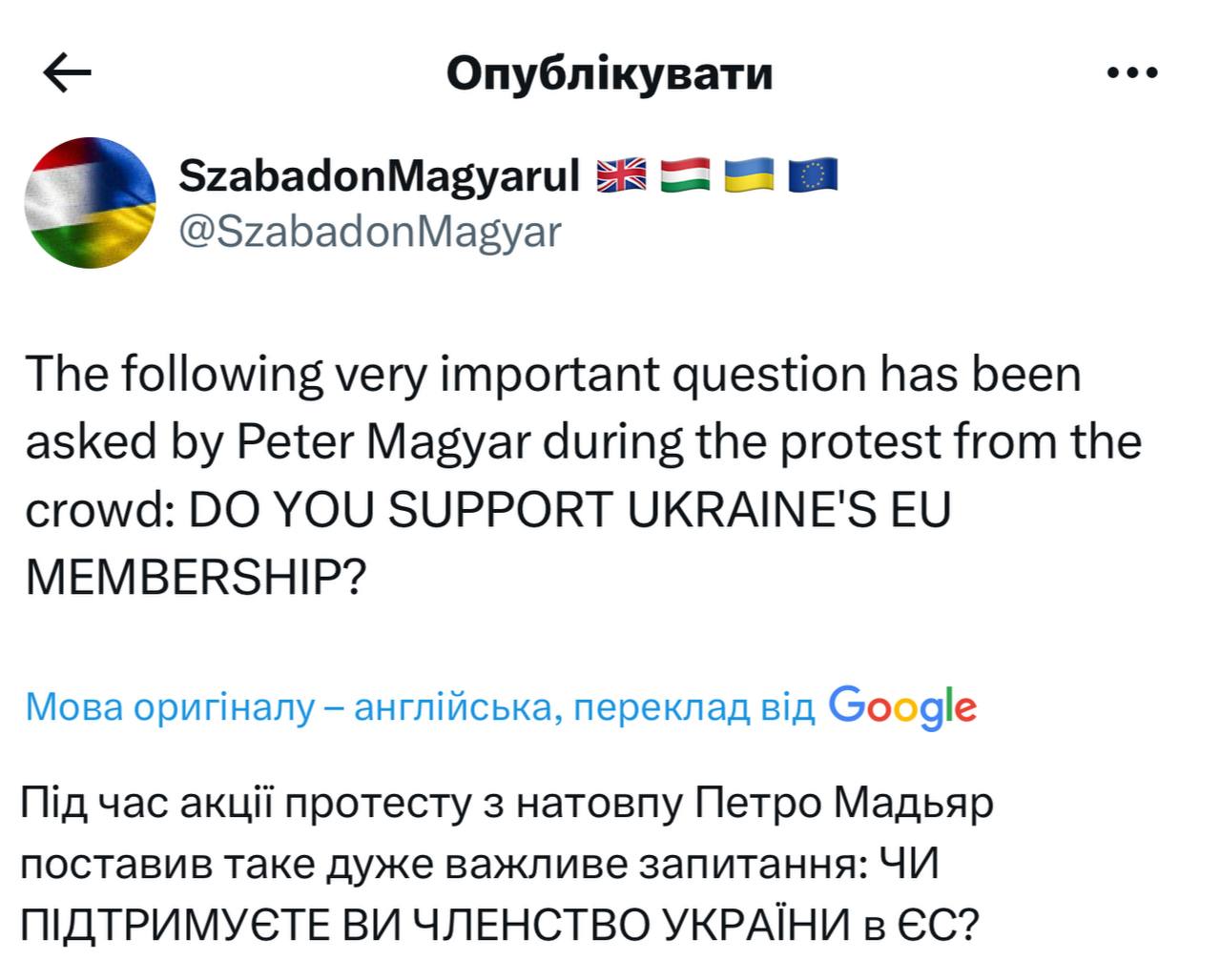 According to him, all members of the European Union and the United States support Ukraine's accession to the EU, but official Budapest is taking a blocking position.