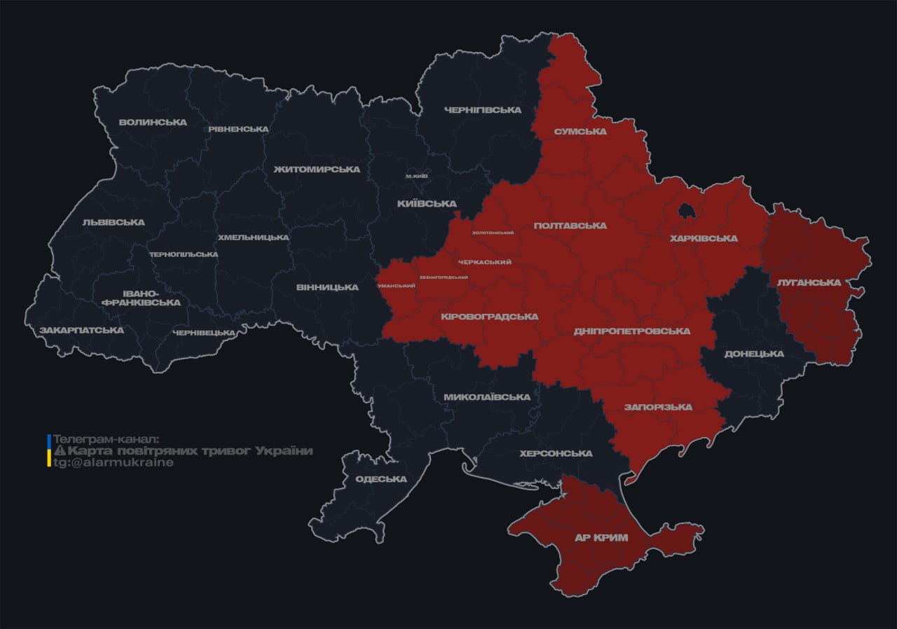 ❗️Угроза UAVs in Kyiv and regions where an alert has been declared.