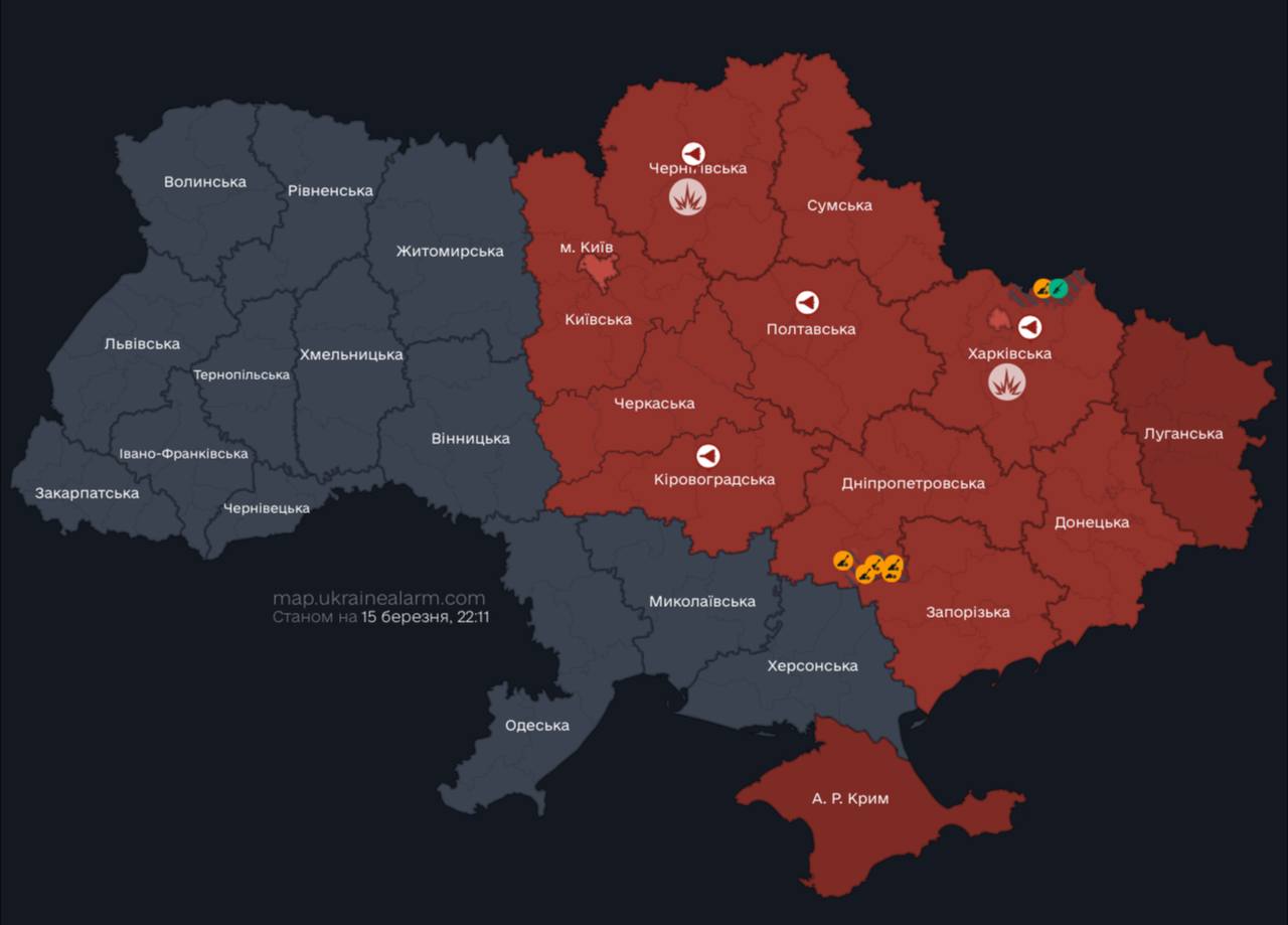 In the evening of March 15, the enemy attacked Chernihiv with drones. There were hits from "Shahed" within the city.