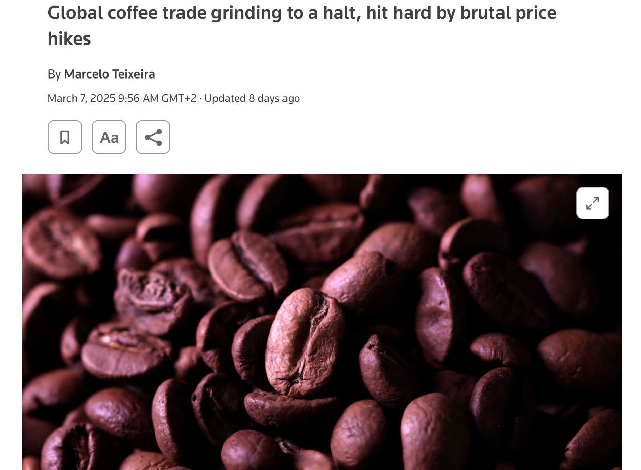 ⚡️Мир global coffee shortage awaits: trade has virtually ground to a halt, with buyers cutting deals to a minimum as the industry experiences a price spike - Reuters