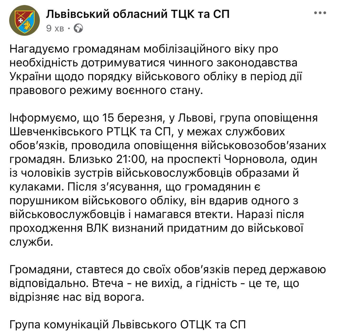 This was reported on the official page of the Volyn Regional CCC and JV. The man was detained and investigators have already served him with a notice of suspicion.