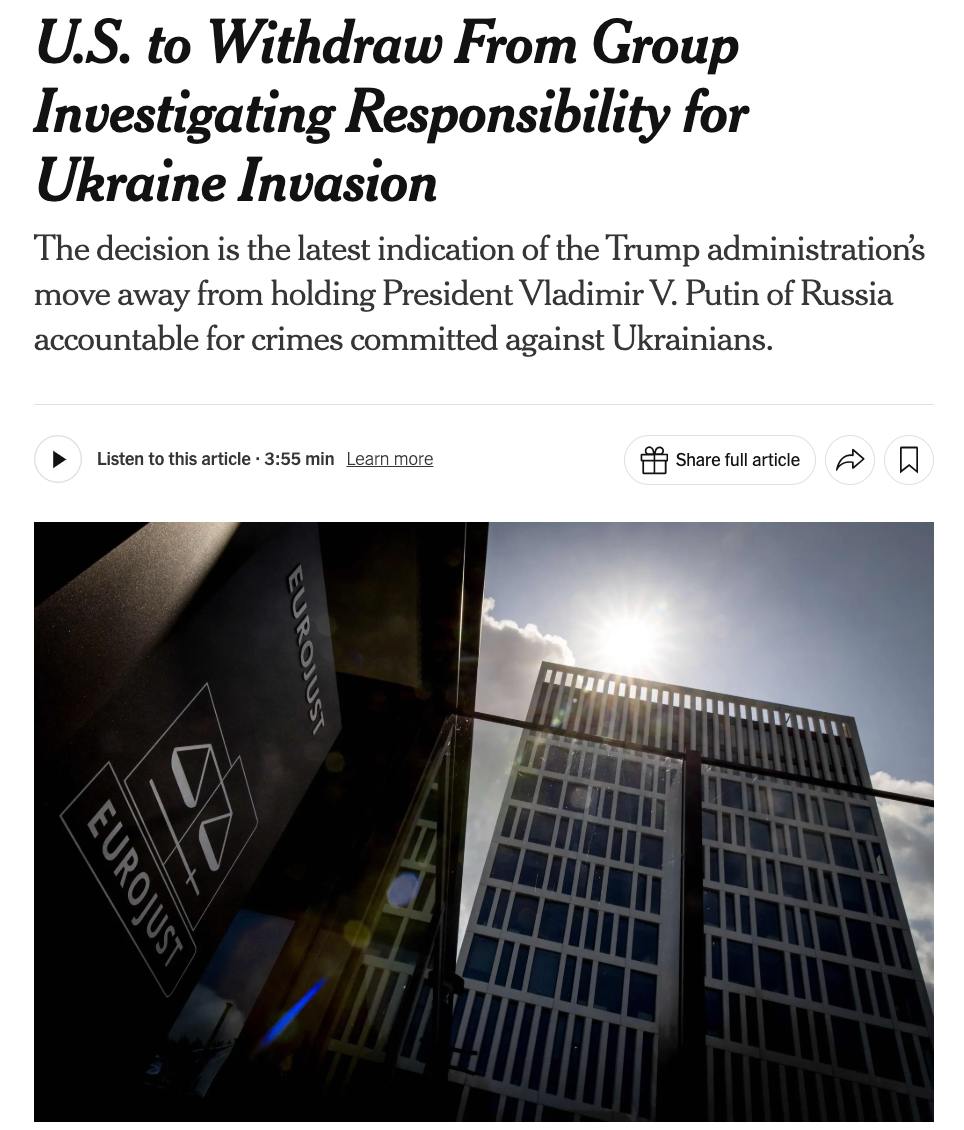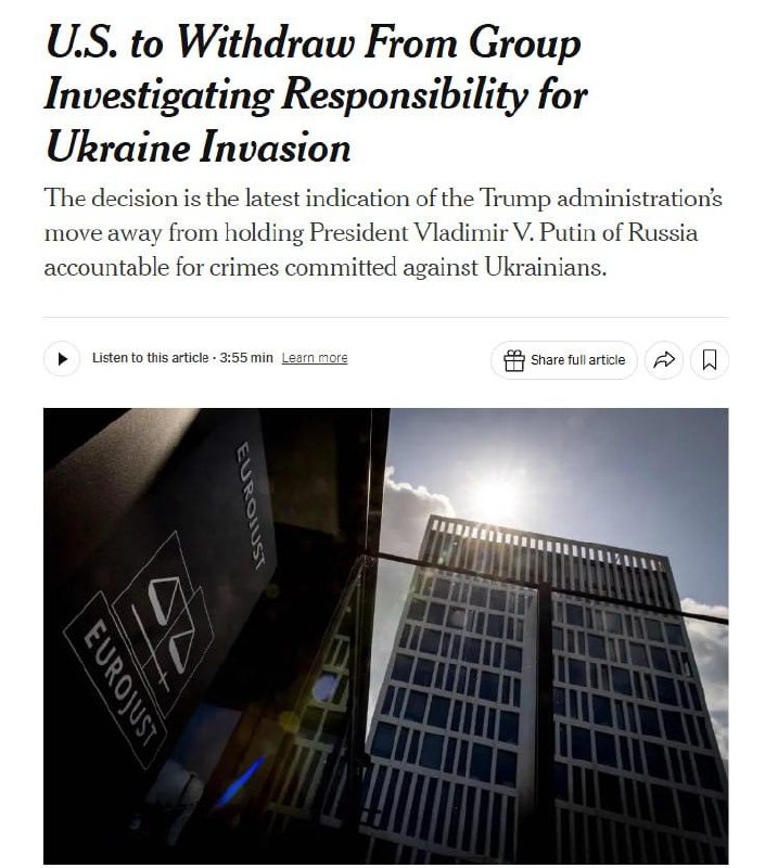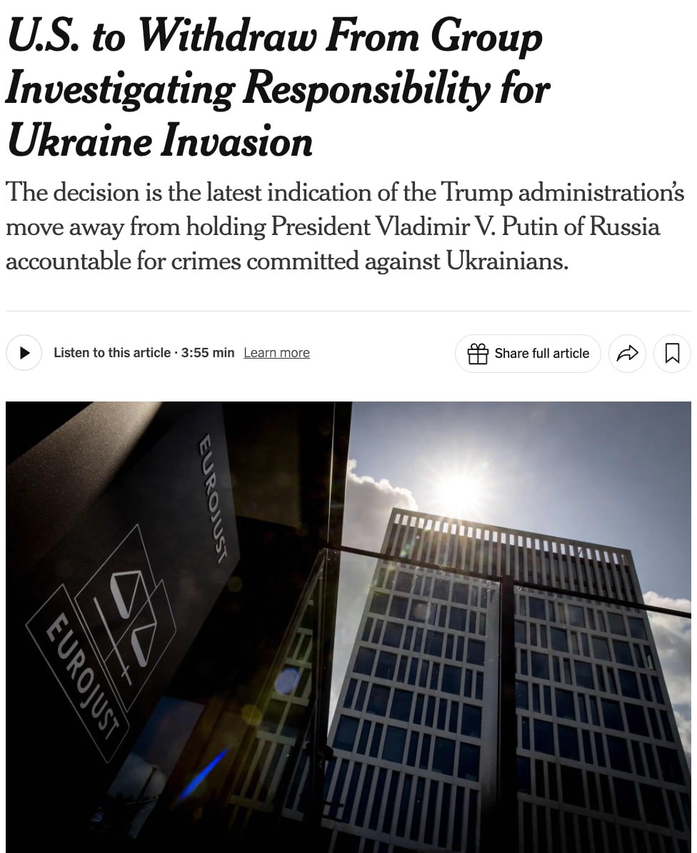 The US withdraws from the international group investigating Russia's crimes in the war against Ukraine - NYT.