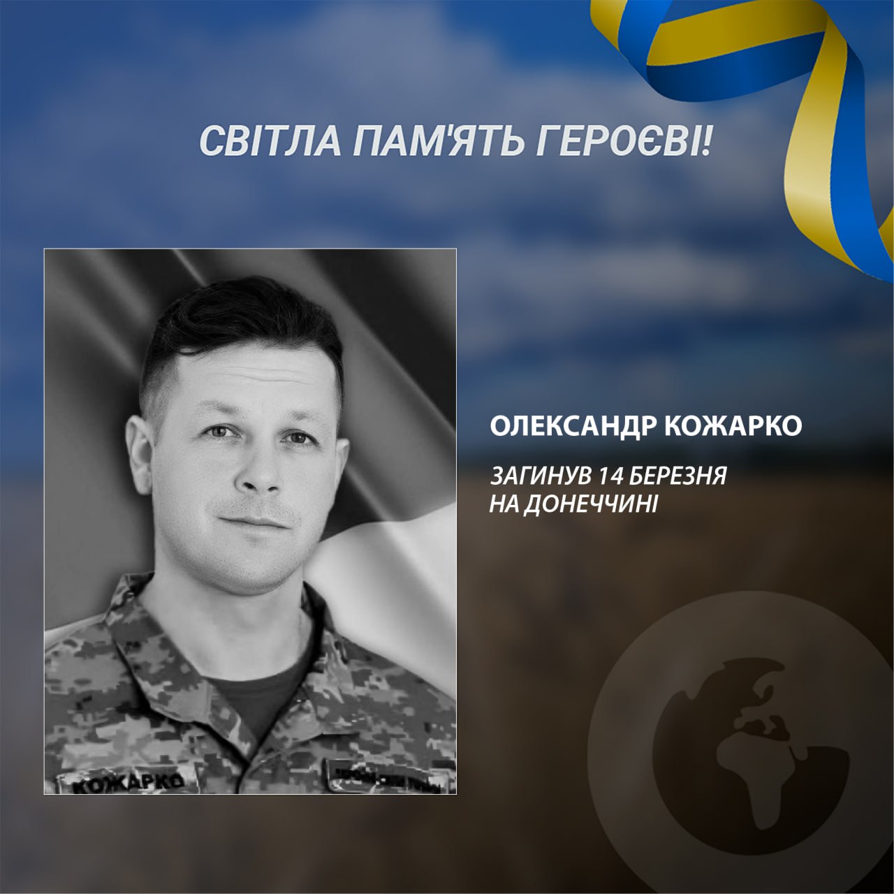 Unfortunately, on March 14, 2024, near the village of Tonenke, Donetsk region, Oleksandr Kozharko was killed. He is survived by his wife and son.