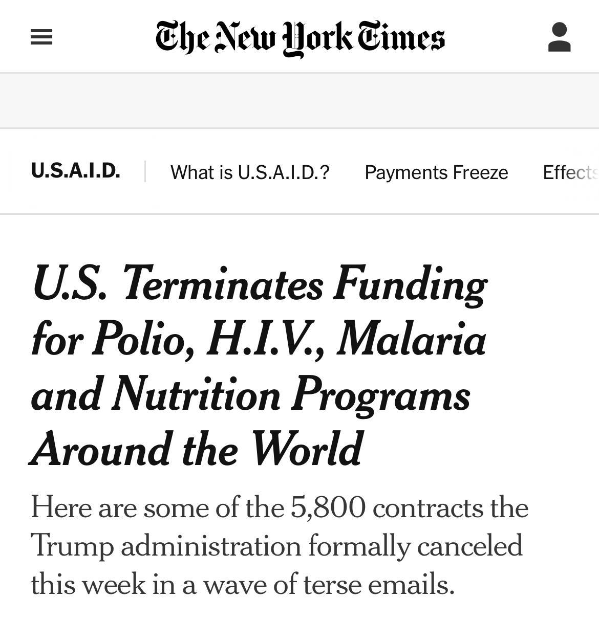 The Trump administration has canceled about 5,800 USAID contracts supporting HIV, malaria, polio and malnutrition programs around the world.