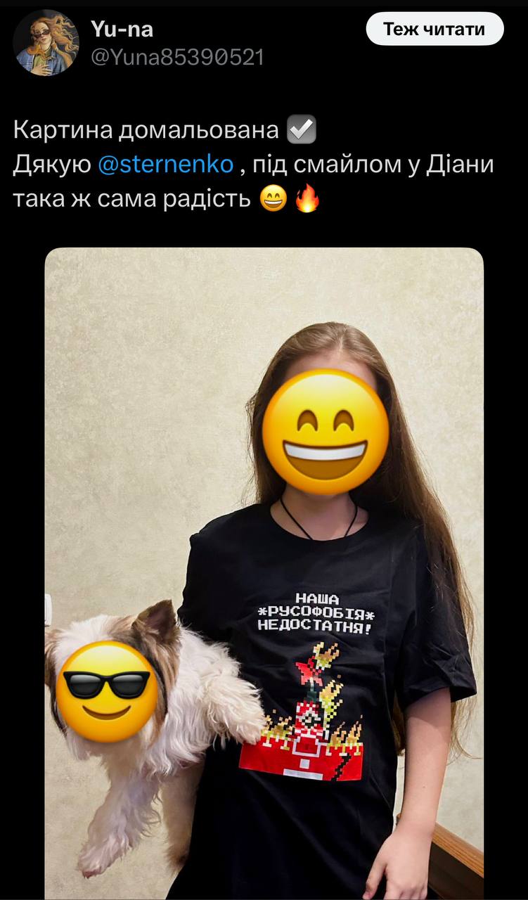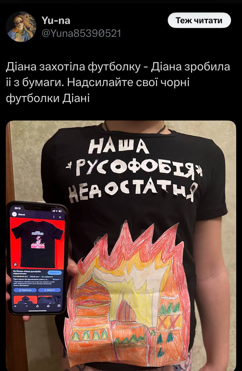 The other day I saw a tweet about a girl named Diana making a T-shirt out of paper titled "Our Russophobia is not enough."