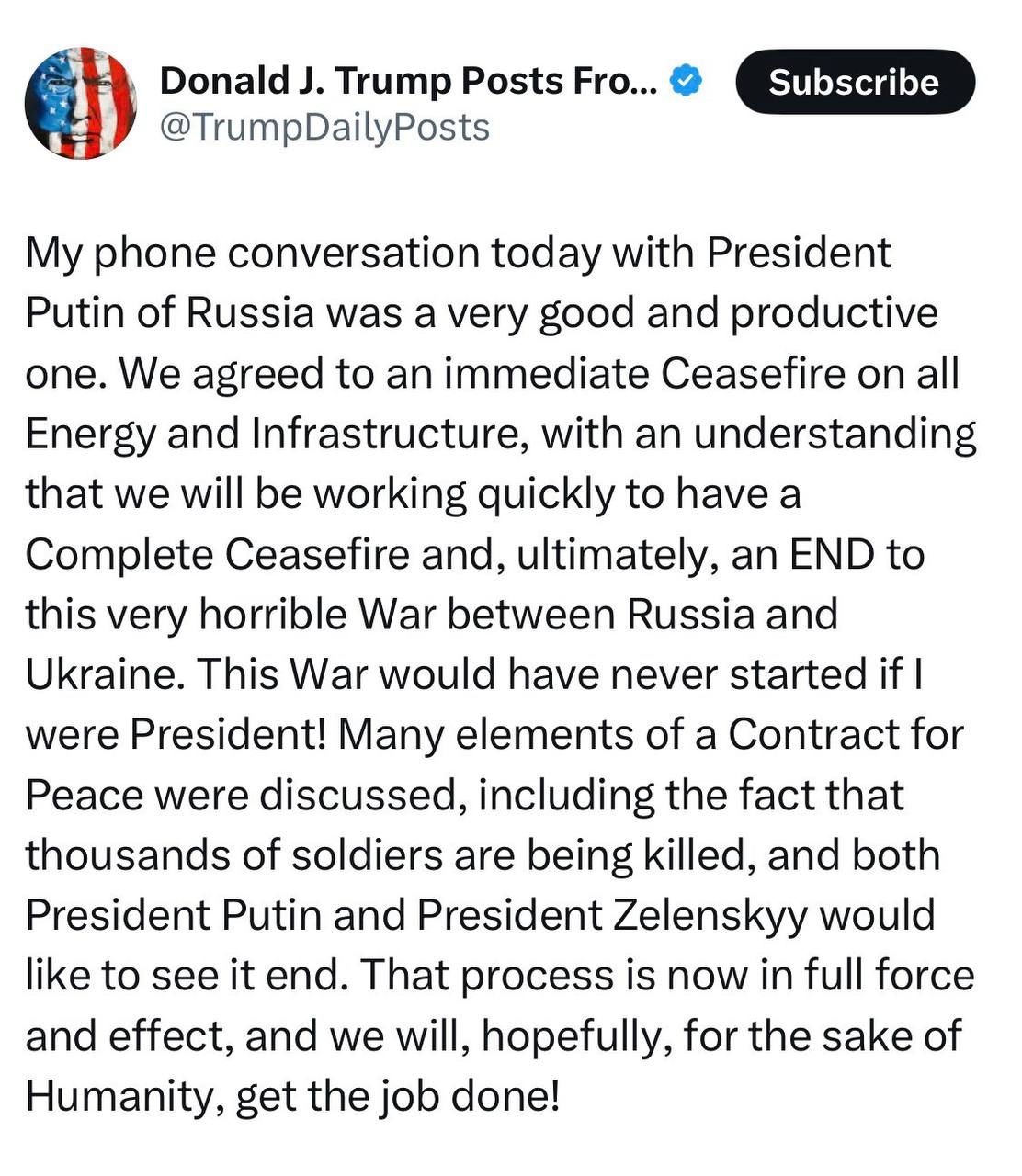 ❗️Трамп and Putin have agreed on a partial cease-fire in Ukraine, but the plan still needs approval from Kiev - The Washington Post.