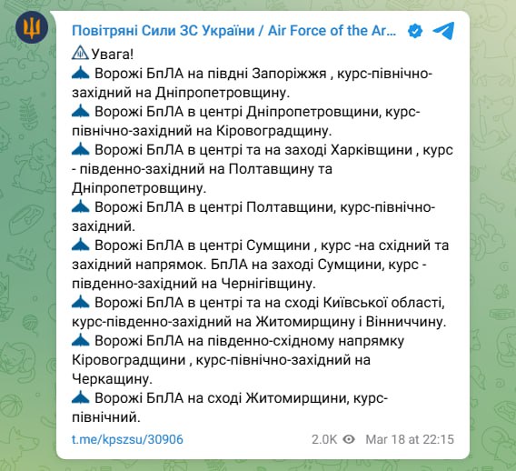 ‼️ Meanwhile, Russia has launched another batch of "Shaheds" in Ukrainian cities 🤬