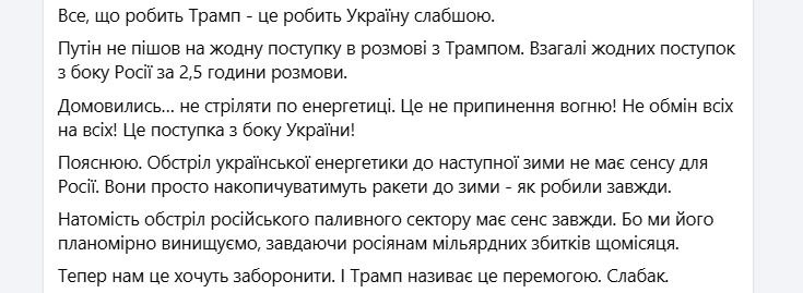▪️Чотири - mutual cessation of shelling of energy infrastructure and exchange of prisoners. In fact, these are the two most important points we learned from this conversation;