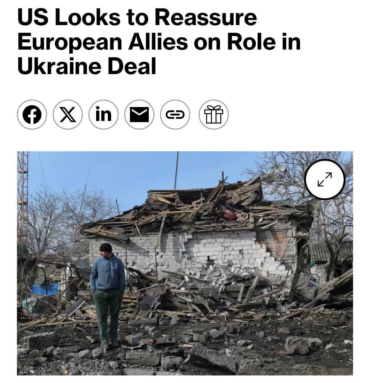 US tells EU it will have to be part of any Ukraine peace deal - Bloomberg