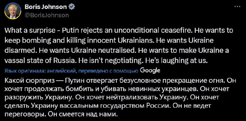 ▪️Три - Putin continues to drown "for the elimination of the root causes of the conflict", such as "denazification, demilitarization, etc. Nothing new here;