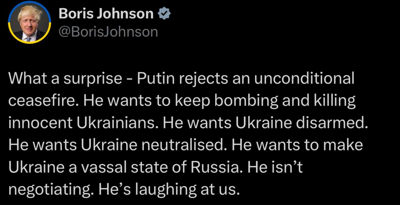 "It looks very strange: if you don't want to continue fighting against us, why are you doing everything to weaken our army?" - Zelensky on the dickhead's demand to stop foreign aid to Ukraine during the 30-day truce
